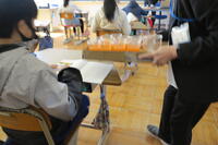 換気を行い距離をとっての調理実習でした。今日の経験を生かして、家でも作れるようになるといいなと思います。