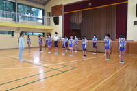 本日の業間休みの時間、ミニバスケット部は、6年生との「お別れ試合」を行いました。4.5年生と一緒の試合、そして、先生方との試合を行いました。6年生にとっては、小学校生活最後の試合でした。全校児童へ、6年生の勇姿を見せることができたお別れ試合となりました。ゴールが決まるたびに下級生からたくさんの拍手をもらいました。バスケ部の6年生のリクエストで、先生方との試合も実現しました。思い出に残る試合となりました。いよいよ、卒業までのカウントダウンです。6年生から、5.4年生へバトンが渡されました。※感染症防止の観点より、試合時間を短くし、マスク着用で試合を行いました。