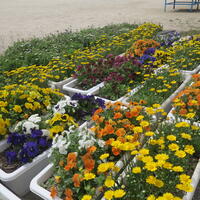 本校では、花壇や植え込みに植える花を種から育てています。春の花のパンジーやさくら草、クリサンセマム、キンセンカは、盛りを過ぎたので抜きました。次の夏の花は、マリーゴールド、サルビア、千日紅、アゲラタムなどです。本校の二人の業務員さんが中心になり、グリーンボランティアの皆さんや児童と職員が協力して、花いっぱいの福田二小にしています。蝶やトンボも飛んできます。少し前には、コウノトリが本校のけやきの木に巣を作っていたカラスに追いかけられ、福二小の校舎や校庭の真上を何度も旋回し逃げまどっていました。初めて、至近距離でコウノトリが舞っている(実際はカラスから逃れるために慌てふためいていましたが・・)姿を目撃しました。また、職員室前には、ニホントカゲがすんでいます。実は、職員玄関にはヤモリの住処もあります。今日は、自然あふれる福田二小の紹介でした。
