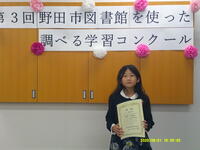 図書館を使った調べ学習コンクールにおいて、本校4年生児童が中学年の部で優秀賞を受賞しました。第1回の最優秀賞に始まり、これで3年連続の表彰となります。この調べ学習コンクールに於いて、3年連続で野田市のTOP3に入っていること(継続していること)が、本当に素晴らしいと思います。受賞作は、本人と保護者の了解を得て、図書室に展示いたします。