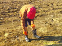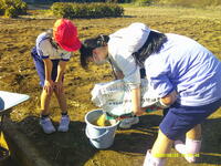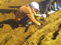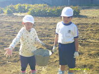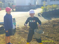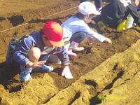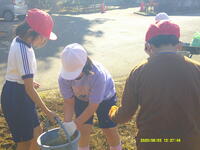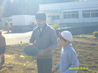 3年生が、事務支援員の植竹先生と地域在住の坂巻さんの指導の下、「麦まき」を行いました。