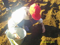 2校時後半に、籾殻と肥料をまき、3校時の体育の時間の間に、坂巻さんがトラクターで畑を耕してくださいました。そして、満を持して4校時に「麦まき」です。とても小さな粒なので、蒔くのも大変そうでしたが、植竹先生に掘っていただいた溝の中に麦の種をまき、優しく土をかぶせて上手にまくことができました。