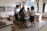 今日の授業のテーマは「炎色反応」についてです。5つの水溶液を染み込ませた綿が、燃える時にどのような色をしているかを調べる実験をしました。実験の結果、銅→緑、ナトリウム→オレンジ、カルシウム→オレンジ、ストロンチウム→赤、カリウム→紫・ピンクとなりました。少人数ですので、全員が自分の手ですべての実験を行うことができました。先生は、とても丁寧に説明してくださり、子どもたちは中学校での理科の学習が楽しみになりました。