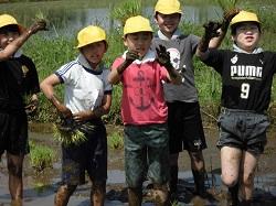 初めて田植えをして、田んぼは深くてどろが多くて、稲を植えるときは、すごく大変だということがよくわかりました。いい経験になったと思います。田植えが終わった後、服にどろがたくさんついていたのでおどろきました。