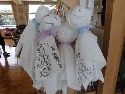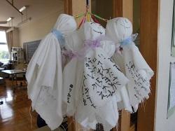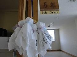 下級生が上級生のためにやさしい心づかいをしてくれる。そんなところが福田二小の子どもたちのいいところなのです。 てるてる坊主の顔もなんだかやさしい表情をしています。