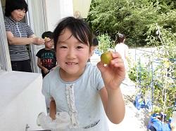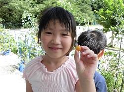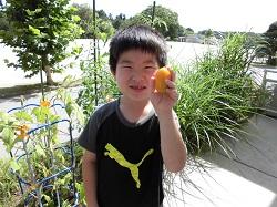 「私のトマトもおいしそうだよ。今日は3個もとれたから、先生にあげるね。」