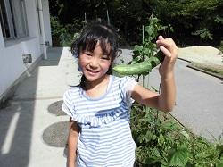 「私は、こんなに大きいきゅうりがとれたよ。」「すごいね・・・・。」
