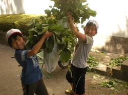 今日とれた野菜は、今夜のみんなのおうちの食たくに並ぶのでしょうか。どんなお味がするかしら?