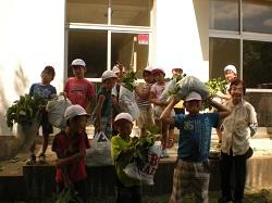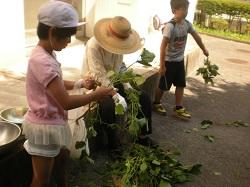 子どもたちはたくさん実をつけて、立派に育った枝豆を力を込めて抜きました。