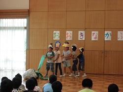 この劇の披露は、恒例となりつつあります。その年、その年の1年生の個性が発揮され、全校児童が楽しみにしています。