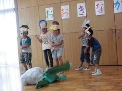 7月16日(木)、1年生が国語の教科書に出ている”おおきな かぶ”をアレンジした劇を、全校児童の前で披露しました。
