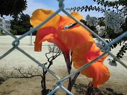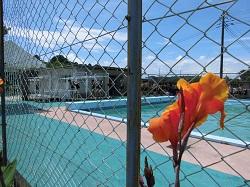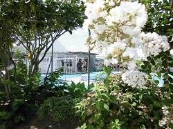 プールのすぐ外側に咲いていたグラジオラスのお花も、フェンス越しに子どもたちが楽しそうに水遊びをするのを見ているようです。