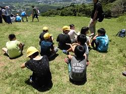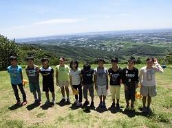 福二小の5年生で、下界をバックに「はい、チーズ」
