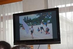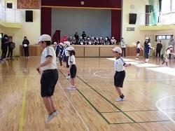 ステージで応援していた下級生は、5・6年生のすばらしい技に釘付けでした。日頃、たてわりグループで一緒に遊んでもらっているお兄さんやお姉さんを応援する子もいました。1・2年生も大きくなったら、お兄さん達のように跳べるようになりたいですね。