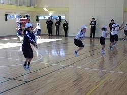各学年に応じて課題が設定されています。その跳び方が何回跳べるかを競います。1年生と2年生の前に座っているのは、1・2年生がが何回跳んだかを数えてくれている6年生のお兄さんお姉さんたちです。福二小の上級生たちは、下級生の面倒を本当に良く見てくれます。本校の自慢できるところです。