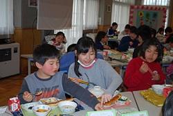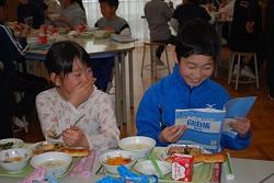 本校では、卒業していく6年生を全校児童と教職員がお祝いの気持ちをこめて、毎年「けやきルーム」で記念の給食会を行っています。