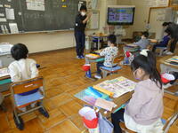 2年生は、道徳の学習でした。「じぶんで オッケー」という資料を読む先生の声を聞きながら、みんな文字を目で追いながら聞いていました。資料に出てくる2年生の行動と自分の行動を比べながら、自分でできることについて話し合いを進めていました。一学年進級して、お兄さん、お姉さんになりました。