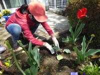 3年生は、理科の学習でした。モンシロチョウの観察のために、花壇にキャベツの苗を植えていました。キャベツが成長して、モンシロチョウがたまごを産んだら観察がスタートです。上手に植え替えができました。