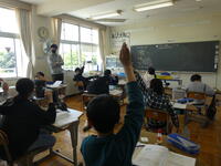 4年生、5年生は、野田市の学力到達度テストに取り組んでいました。算数のテストです。みんな、真剣に取り組んでいました。6年生は、算数の学習をしていました。「点対称」の学習です。既習事項の「線対称」を思い出しながら、学習問題を立てている場面でした。最高学年になり、学習へ取り組む姿勢がよりよく変化しています。学校のリーダーとしての自覚が芽生えてきています。