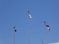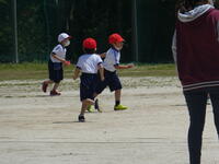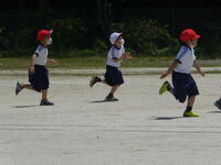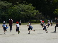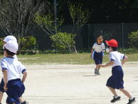 また、腰に付けた二枚のフラッグを追いかけてとる鬼ごっこも楽しみました。三旗が横風ではためいたり、3年生が花壇に放したナミアゲハが、風のためしばらくキンセンカの花の上から動かなかったりした少し風の強い一日でしたが、みんな元気いっぱい身体を動かしました。