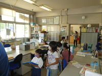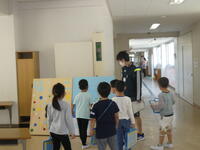 本日、3校時に1年生と2年生の学校探検がありました。2年生が、案内役になり1年生を案内しました。各教室や特別教室にはシールが置いてあり、探検が終わると地図にシールを貼っていくという学校探検でした。