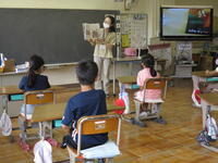 本日、昼休みは2.3.4年生の読み聞かせでした。昨年度に引き続き、森さん、磯野さんが来てくださっています。コロナ感染症防止対策として、子どもたちは自席でという形態で行っています。学年に合わせた本を読んで聞かせてくださいました。