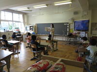 5時間目には、3年生と4年生(昨年受講できなかったため)が、リコーダー講習を受けました。最初に誰もが知っている曲、Yoasobiの「夜を駆ける」、米津玄師の「Lemon」、「サザエさんのテーマソング」、星野源の「ドラえもんのテーマソング」など全5曲を講師の先生が美しい音色で披露してくれました。そのあと、正しい持ち方、吹き方、きれいな音色の出し方、指の押さえ方をわかりやすく教えてくださいました。やはり、本物は違います。※感染症防止対策を行いながら実施しました。