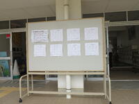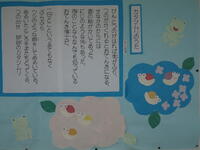 図書室の廊下には、4.5月に図書室の本をたくさんかりた友だちの名前が書かれた掲示物が貼ってあります。20冊以上かりた人は、2年2人、4年1人、5年4人でした。15冊~19冊かりた人は、1年2人、2年2人、4年3人、5年2人、6年2人でした。本好きな子どもたちが増えています。