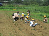このえだまめは、畑の先生の金剛寺さん(隣の畑)の畑でできました。「つやひめ」という名前で茶豆の一種です。「湯あがり娘」が有名ですが、「つやひめ」も同じくらいゆでた時の香りが強いことを金剛寺さんが教えてくれました。1年生が力を貸してくれた今日の給食は、一層おいしく感じられました。ちなみに、1年生がそれぞれ数えたさやの数を合計すると【761】でした。食育、生活科、算数を関連付けた学習となりました。