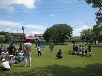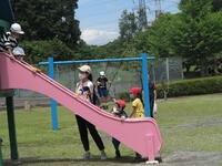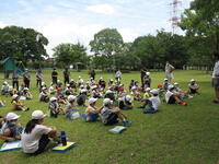 本日、学校の近くの11号公園に行きました。「全校なかよし遠足」です。A~F各グループの6年生がリーダーとなって活動しました。活動前後の手洗いや消毒、水分補給、熱中症予防のための出発前のタブレット塩分チャージ等々、感染症予防に気をつけながらの活動でした。