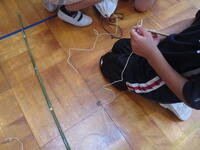 1.2年.にじいろ学級は、明日ザリガニつりに行きます。その準備のため、一人一本「つりざお」を作りました。先日、子どもたちはつりざお用の竹や枝の棒の準備のため、学校近くで棒探しをしましたが本数が揃いませんでした。そこで、業務員の杉﨑さんにお願いするとすぐに不足分を用意してくれました。