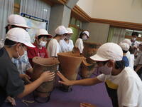 本日、6年生が歴史の出前授業を受けました。野田市の職員の方3名が来校くださり、野田市から発掘された縄文・弥生・平安時代の土器等について説明してくださいました。福田二小の近くで発掘された弥生時代の大きなかめや勾玉などの飾りも紹介してくれました。土器を見た後は、野田の歴史についての映像を見て理解を深めました。