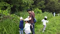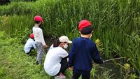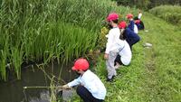 今日、1年生、2年生、にじいろ学級のお友だちが、ざりがにつりに行きました。ターザン山を通り、コウノトリの里近くの釣り場に行きました。最初は、なかなかコツがつかめず釣れずにいましたが、じっと静かに待っていると餌のスルメイカに食いついてきました。うまく釣り上げられると嬉しくて、本人も周りの友だちも歓声をあげました。本校の近くにある江川地区は、自然の宝庫です。釣りを楽しんでいる間、ウグイスをはじめたくさんの野鳥のさえずりが聞こえてきました。貴重な体験ができました。