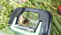 活動を終えて教室に戻る途中で、夏型ナミアゲハが羽化していることに気づいたお友だちが、メルシー先生に教えると、メルシー先生は、「Beautiful butterfly!」とびっくりしていました。メルシー先生は、福二小の人気者です。