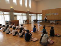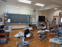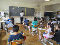 5時間目には、3年生と4年生(昨年受講できなかったため)が、リコーダー講習を受けました。最初に誰もが知っている曲、Yoasobiの「夜を駆ける」、米津玄師の「Lemon」、「サザエさんのテーマソング」、星野源の「ドラえもんのテーマソング」など全5曲を講師の先生が美しい音色で披露してくれました。そのあと、正しい持ち方、吹き方、きれいな音色の出し方、指の押さえ方をわかりやすく教えてくださいました。やはり、本物は違います。※感染症防止対策を行いながら実施しました。