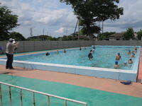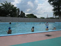 本日は、1.2年、にじいろ学級と5.6年生の水泳指導が予定されていましたが、午前中に雨が降りましたので、5.6年生のみの指導実施となりました。途中、太陽が顔を出し暑くなりました。2年ぶりのプール学習でしたので、水慣れのあとは、泳力でのグループ分けから行いました。