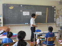4年生は、180°より大きな角の調べ方、6年生は、比を使って数量を求める方法についての学習です。子どもたちは、みな集中して学習に取り組んでいました。子どもたちの下校後に授業検討会を持ち、よりよい授業づくりのための話し合いを行いました。