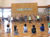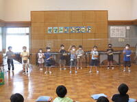 また、計画委員会の発表がありました。「う」んどうをしっかりと、「ち」ゃんとべんきょう、「わ」わらってけんこうにすごそう、という頭文字『うちわ』のキャッチフレーズの発表です。夏休みの目標を全校で確認しました。