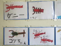 2年生は、自分のザリガニを観察して絵を描きました。名前も付けたようです。廊下に掲示してありましたので、紹介します。