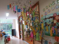 今日は、七夕です。昼間に少し陽ざしが差し込みました。今晩、彦星と織姫が会えるといいなと思います。にじいろ学級の前の七夕飾りの短冊は増え、たくさんの願い事が飾られています。みんなの願いが叶うといいなと思います。