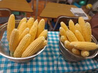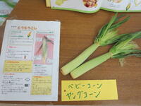 若松先生のエプロンも好評でした。手作りの「ひげ付きとうもろこしバージョン」のエプロンです。学習の中では、このエプロンが一つの大切な資料となりました。にじいろ学級のお友だちが下準備してくれた今日の「とうもろこし」の美味しさは、格別でした。ありがとう!