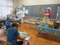 給食室に入るのは、はじめてです。子どもたちは、若松先生の説明を聞いたり、大きなお釜に入っている食材(ボール)を大きなしゃもじでかき混ぜる体験をしたりしました。この体験を通して、いつも食べている給食がどのように作られているのかがわかったようです。夏休み明けからは、以前より想像力を膨らませて給食を食べることができますね。貴重な体験ができました。協力してくださった調理員のみなさん、ありがとうございました。