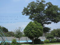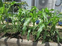 今日は、雨が上がり久しぶりの青空でした。校庭は、今まで降り続いた雨が蒸発して、湿気でむんむんとしていました。影も濃くなり夏を感じた土曜日の午前中でした。花壇のとうもろこしやヒマワリは、雨を得て日に日に大きく大きく成長しています。