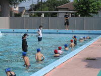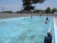 本日は、久しぶりに太陽のもとでプール指導ができました。1.2年.にじいろ学級と3.4年生が実施しました。最初は、少し冷たい水でしたが、太陽が照りつけてくるとプールに入るのには丁度良いコンデションとなりました。今年のプール指導は、数回の実施の予定です。また、指導の最終日に着衣泳を予定しています。