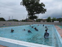 本日、5.6年生が着衣泳の学習を行いました。いざという時に自分の命を守ることが出来る力を身につけることを目標とした水泳学習です。靴も履いての着衣で泳ぐことを実際にしてみると、動きにくく難しいことが分かりました。実際に水の中で体力を温存するには、力を抜いて浮いて助けを待つことが大切です。しかし、最初は力が入ってしまい、上手く浮くことが出来ませんでした。しかし、力を抜くこつをつかむと上手に浮くことが出来るようになりました。また、ペットボトル一つあれば浮くことが出来ることも、実際に体験することが出来ました。どの子にも、良い体験となりました。