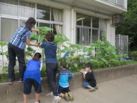 3年生は、理科の学習で花壇のひまわりを観察しました。ひまわりの丈は140センチメートルを超えて伸び、葉っぱも大きく大きく成長しました。まだまだ成長途中です。夏休みに入るまでに花が咲くのでしょうか?ぎりぎりまで、成長を観察していく予定です。