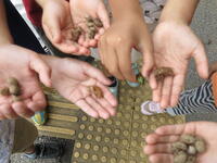 今週の月曜日の朝から、セミの鳴き声が聞こえるようになりました。セミにも梅雨明けがわかったのでしょう。さて、いつものように、今日の朝もにじいろ学級のお友だちは、校庭を散策していました。職員室に居るとみんなに呼ばれたので行ってみると、けやきの木の近くでセミの抜け殻をたくさん見つけたとのこと。手のひらにのせて見せてくれました。アブラゼミの抜け殻一つと、ニイニイゼミの抜け殻17個です。玄関に並べて、みんなで一緒に数えてくれました。ニイニイゼミの抜け殻は、みんな泥をつけていました。不思議です。太陽が出てくるとセミが一斉に鳴き始めました。すごい発見でした。
