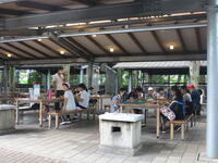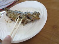 自分たちが釣ったニジマスを係の方が焼いてくれました。自分たちで釣ったニジマスの味は格別だったようです。また、ついさっきまで生きていた命です。頭から尾っぽの先まで(骨も)全て食べた子の多かったこと・・。命をいただきました。