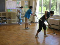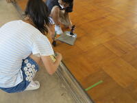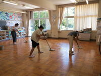 今日を終えると、夏休みまであと一日を残すばかりとなりました。本校では、長期休業を迎えるにあたり、大掃除を実施しました。各教室の中に入っている机やいすなど、移動できるものは移動してワックスがけをしたり、いつもは手が届かないところを掃除したりしました。ワックスがけは低学年には難しいので、1年生の教室は6年生が、2年生の教室は5年生が行いました。頼もしいお兄さん、お姉さんです。また、3.4年生は、学校中のごみを集めて回り、ごみの始末をしました。身の回りをきれいに整頓し、夏休みの準備に入ります。