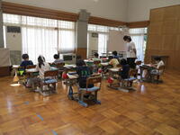 1年生は、けやきホールに机を移しました。午後は、いつもとちょっと違う場所で学習しました。それもまた変化があって「いと、おかし。」ですね。